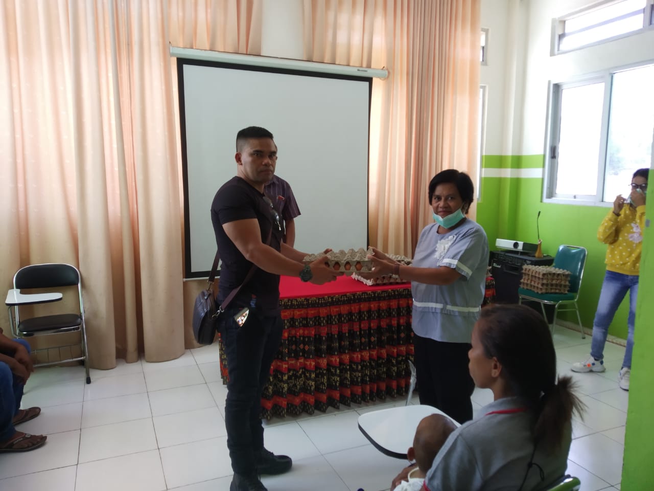 Ada juga donatur yang tidak mau disebutkan namanya dengan memberikan bantuan berupa beras 50kg dan telur 10 rak untuk anak-anak gizi buruk dan gizi kurtang di wilayah kerja Puskesmas oesapa.