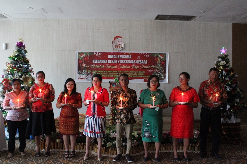 Puskesmas Oesapa menggelar acara Natal Bersama di swiss-belinn Kristal Kupang, Senin (06/01/2020) siang. Natal Bersama yang diikuti seluruh tenaga kesehatan Puskemas Oesapa dan pustu juga turut hadir drg. Shinta R. D. Ndaumanu, M.Kes sebagai kepala puskesmas Kupang Kota yang akan mengantikan dr. Trio Hardhina sebagai kepala puskesmas oesapa. Dalam natal bersama ini diharapkan dapat membangun semangat dan kebersamaan baru dalam melaksanakan pelayanan kepada seluruh masyarakat.