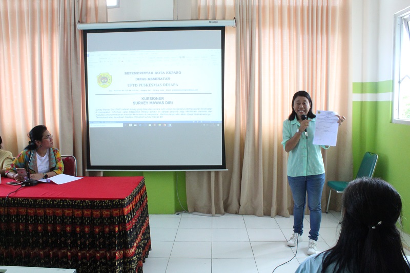 Puskesmas Oesapa mengadakan pertemuan pra survey kegiatan Survey Mawas Diri (SMD) di ruang pertemuan aula Puskesmas yang di buka oleh drg. Shinta R. D. Ndaumanu, M.Kes bersama petugas Promkes Puskesmas Oesapa dan perwakilan kader-kader posyandu di wilayah kerja puskesmas.